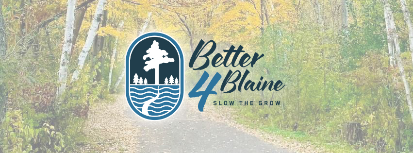 Promote the benefits of measured growth for Blaine, MN that respects the community’s resources, residence desires and quality of life.